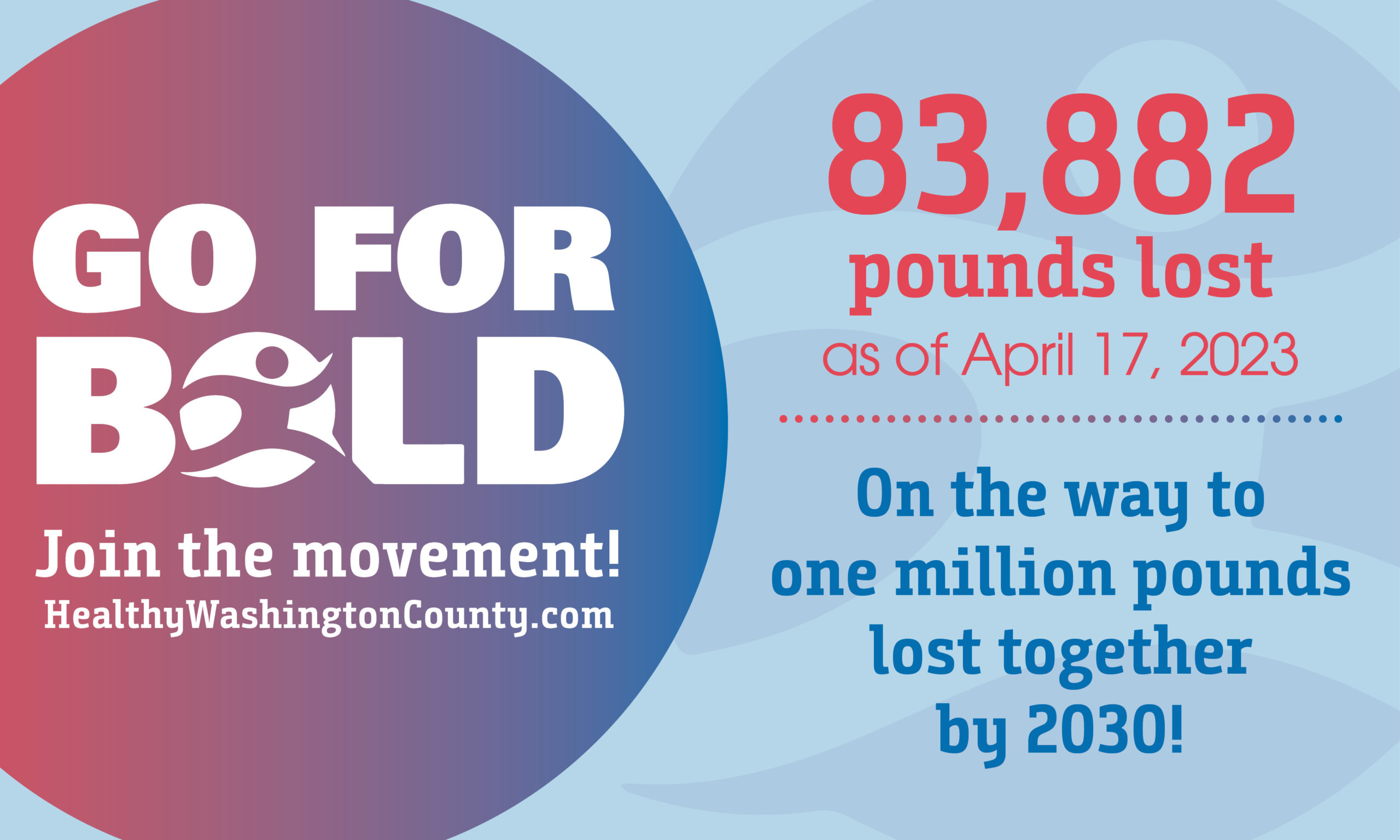 Go For Bold is a community-wide initiative aimed at promoting healthy lifestyles for the residents of Washington County. With a Bold Goal of losing 1 million community pounds by 2030, this 10-year journey will: